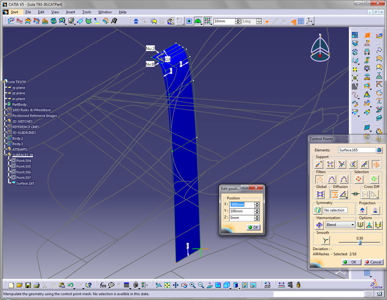 Now that fifth control point in the the v direction I'm going to manipulate to start making a shape